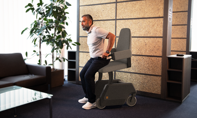 The chair adapts to everyday activities for all-day use, while a multifunctional design combines products, saving space and costs.