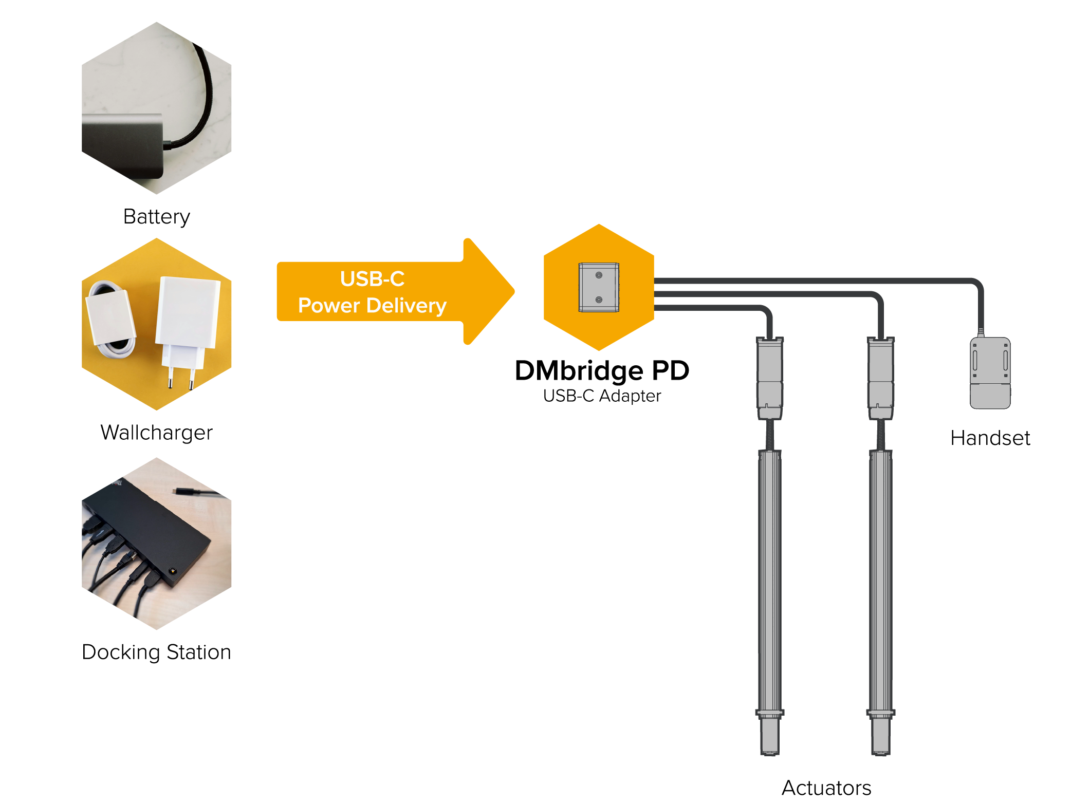 Convenience is a key differentiator on the market for mechatronic furniture. That’s why LOGICDATA’s new high-efficiency columns are compatible with USB-PD power sources already found in offices, helping your business sell low-energy height-adjustable desks powered by off-the-shelf docking stations and wall chargers. USB power also makes it simpler to power desks from battery packs, meaning users can now enjoy a dynamic and adaptable workspace without being close to a wall socket.