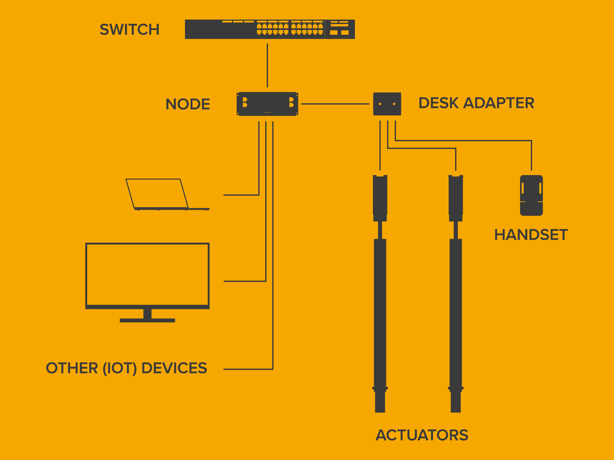 The multipurpose nature of PoE makes our next-generation desk more than just a standalone innovation: instead forming part of a fully-connected PoE ecosystem. In a typical smart office, numerous devices such as monitors, lighting, headphones, sunshades, and air conditioning systems already operate via PoE. By integrating height-adjustable desks into this system, facility managers can unlock new possibilities, including: